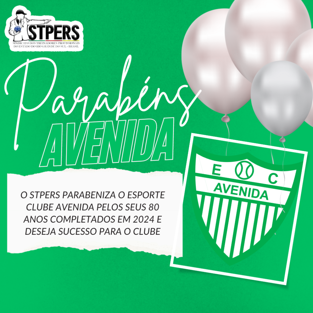 O Sindicato dos Treinadores Profissionais do Estado do Rio Grande do Sul – STPERS – através do seu Presidente Adão Alípio Soares dos Reis e sua diretoria, parabenizam o Esporte Clube Avenida pelos seus 80 anos completados. O clube foi fundando no dia seis (6) de janeiro de 1944 e tornou-se filiado à Federação Gaúcha […]