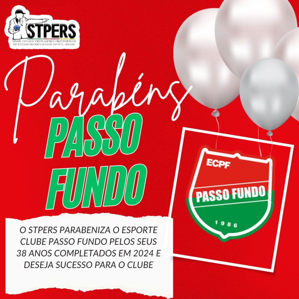 O Sindicato dos Treinadores Profissionais do Estado do Rio Grande do Sul – STPERS – através do seu Presidente Adão Alípio Soares dos Reis e sua diretoria, parabenizam o Esporte Clube Passo Fundo pelos seus 38 anos completados. Fundado no dia 10 de janeiro de 1986 e participou da elite do futebol gaúcho em 25 […]